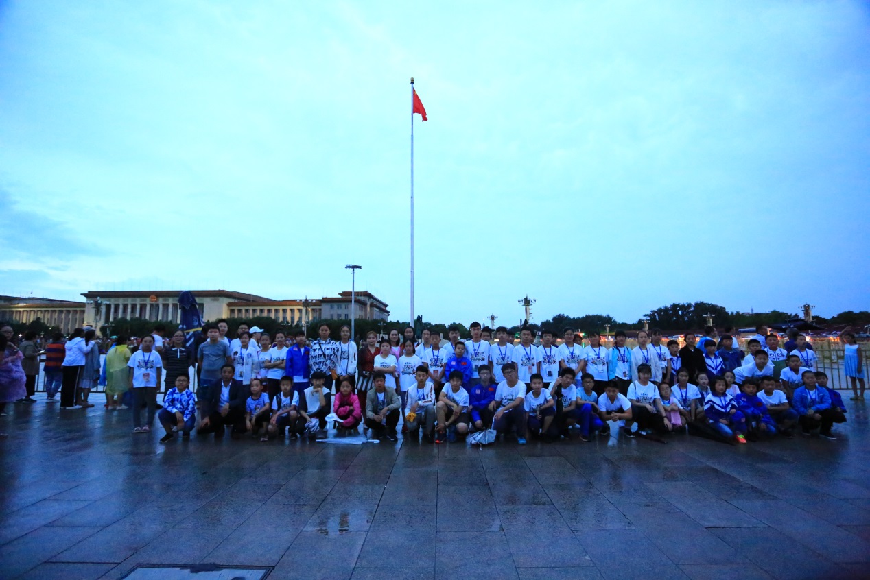 在北京航天城,他们与来自全国各地的小营员一起,与航天员刘伯明、刘洋、陈冬、王亚平亲密互动,学习航天知识,试穿“航天服”,体验航天员训练项目等,还到天安门广场观看了升旗仪式。