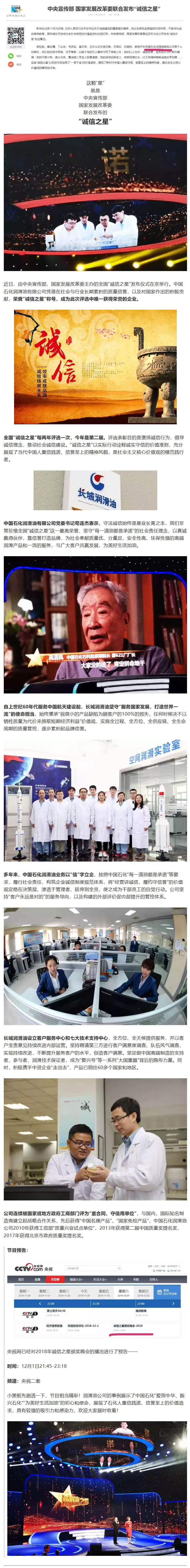 长城润滑油登陆诚信殿堂——欢迎锁定今晚央视全国诚信之星发布仪式