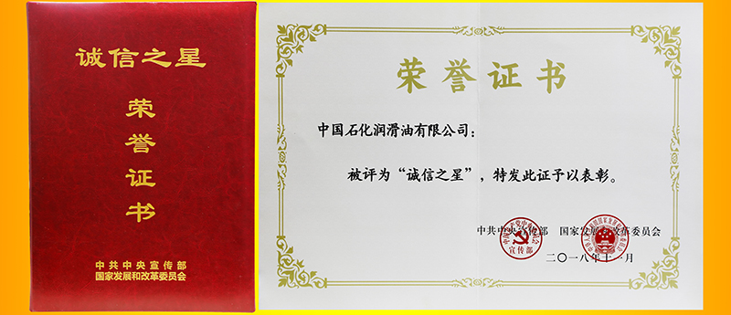 2018年,由中宣部、国家发改委主办的“诚信之星”评选活动在全国范围内展开。经中国石油化工集团有限公司推荐,通过层层审核和专家评选,中国石化润滑油有限公司成功摘得桂冠。