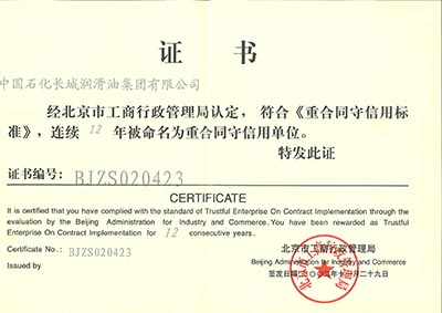 多年来,中国石化润滑油业务以“信”字立企,按照中国石化“每一滴油都是承诺”等要求,履行社会责任,构筑企业诚信制度规范体系,将“经营讲诚信、履约守信誉”的价值观定格在决策层、渗透于管理者、延伸到全员,使之成为干部员工的自觉行动。自上世纪60年代服务中国航天建设起,长城润滑油以近60年坚守“服务国家发展,打造世界一流”的使命担当,始终秉承“视微小的产品缺陷为顾客的100%的损失,任何时候决不以牺牲质量为代价来换取短期经济利益”价值观,以ISO 9001&IATF 16949等质量体系为保证,实施全过程、全方位、全供应链、全生命周期的质量管控,逐步累积起品牌信誉,多年来连续被国家或地方政府工商部门评为“重合同、守信用单位”,与国内、国际知名制造商建立起战略合作关系。在近些年国家和地方政府质检、工商部门数千次的质量抽检中,长城润滑油品质始终符合国家标准。长城润滑油先后获得“中国名牌产品”、“国家免检产品”,中国石化润滑油公司2010年获得工信部“质量兴业试点单位”,2013年获得第二届中国质量奖提名奖。2017年获得北京市政府质量奖提名奖。